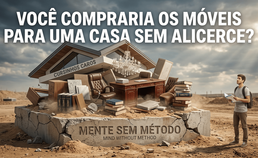 Infelizmente, não. O material é apenas o "tijolo". Se você não tiver a planta (o método) e o alicerce (a neuroestratégia), sua construção vai desmoronar antes mesmo de chegar ao telhado. Investir milhares de reais em videoaulas sem preparar seu cérebro e suas emoções para retê-las é como comprar móveis de luxo para uma casa que ainda está no barro.