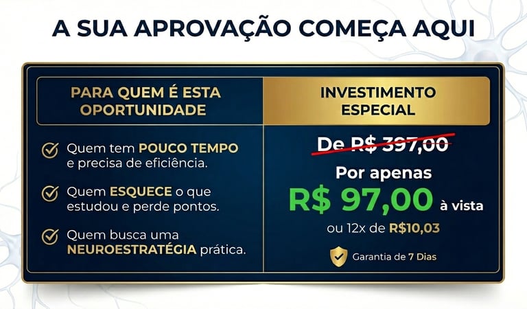 Antes de assinar cursinhos de R$ 3.000, você precisa preparar seu cérebro para não "vazar" informações. Construa seu alicerce de aprovado primeiro!